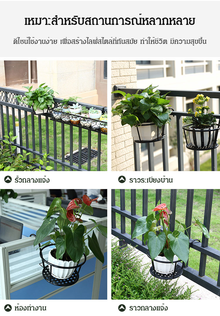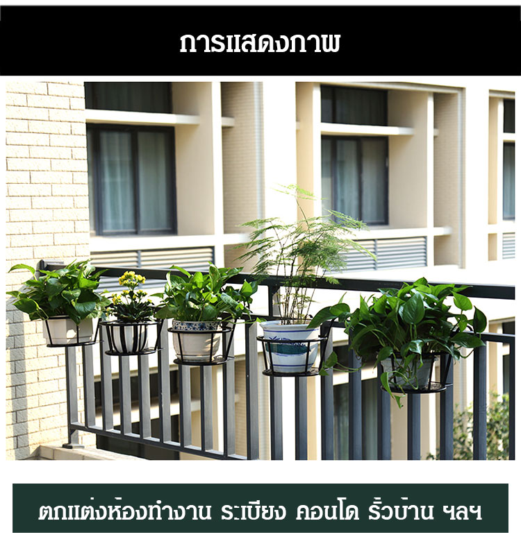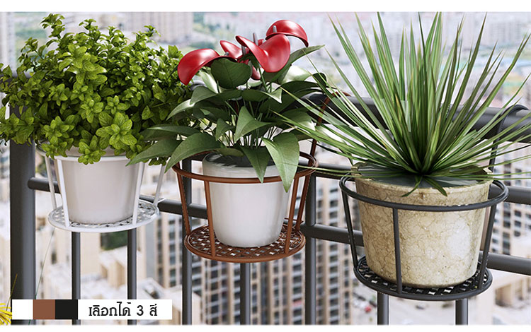 ที่วางกระถางดอกไม้กลมแบบแขวนราวระเบียงบ้าน